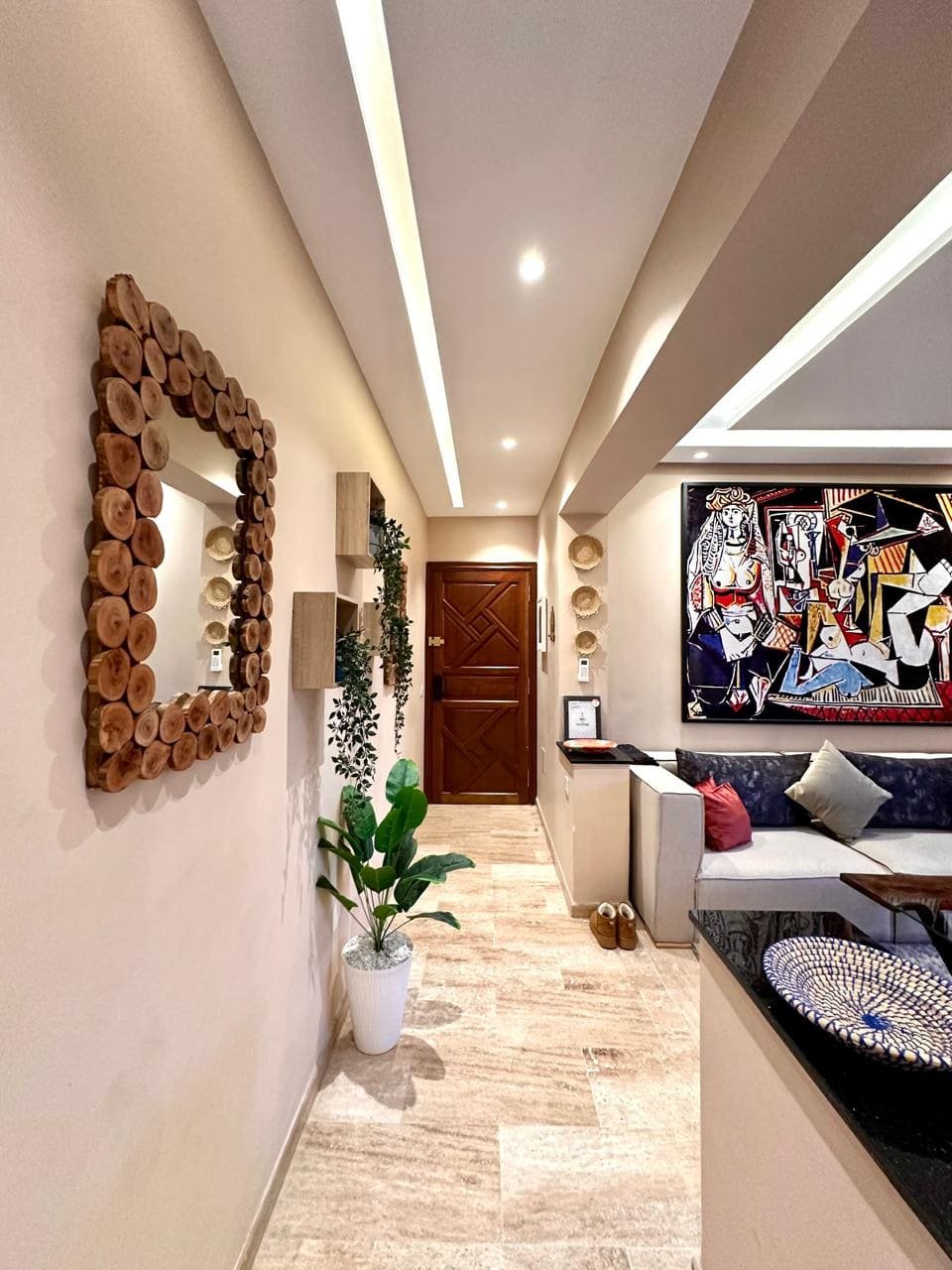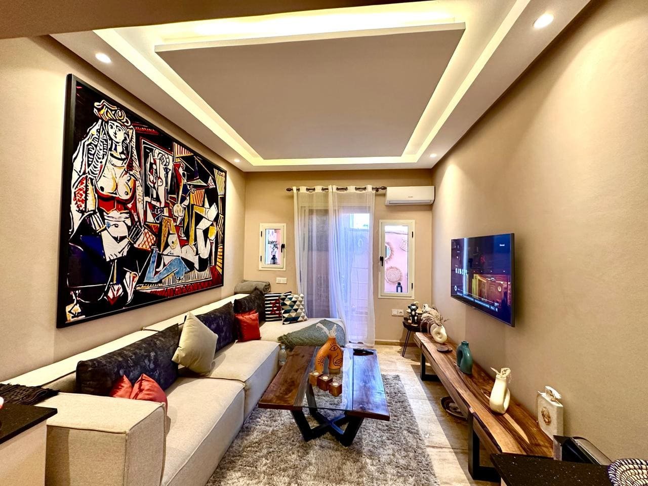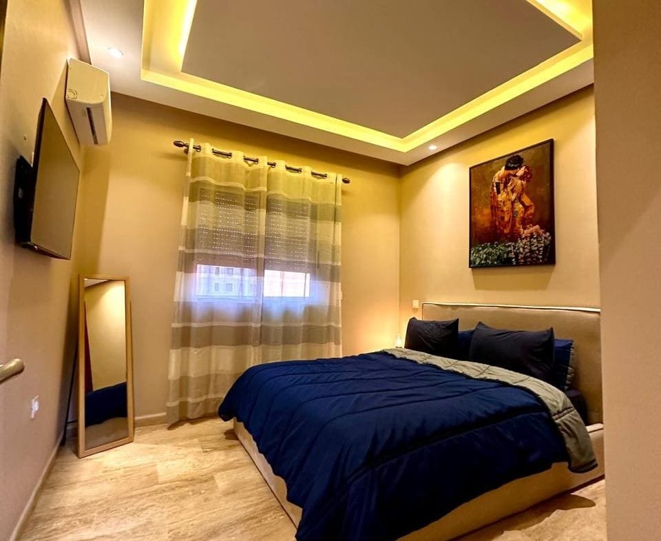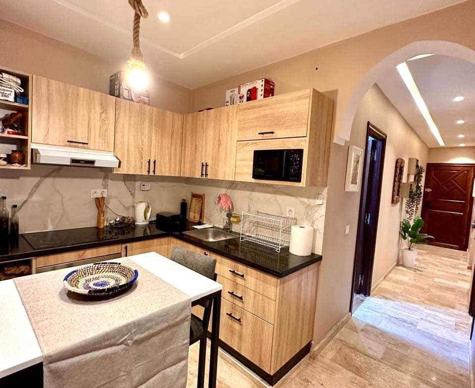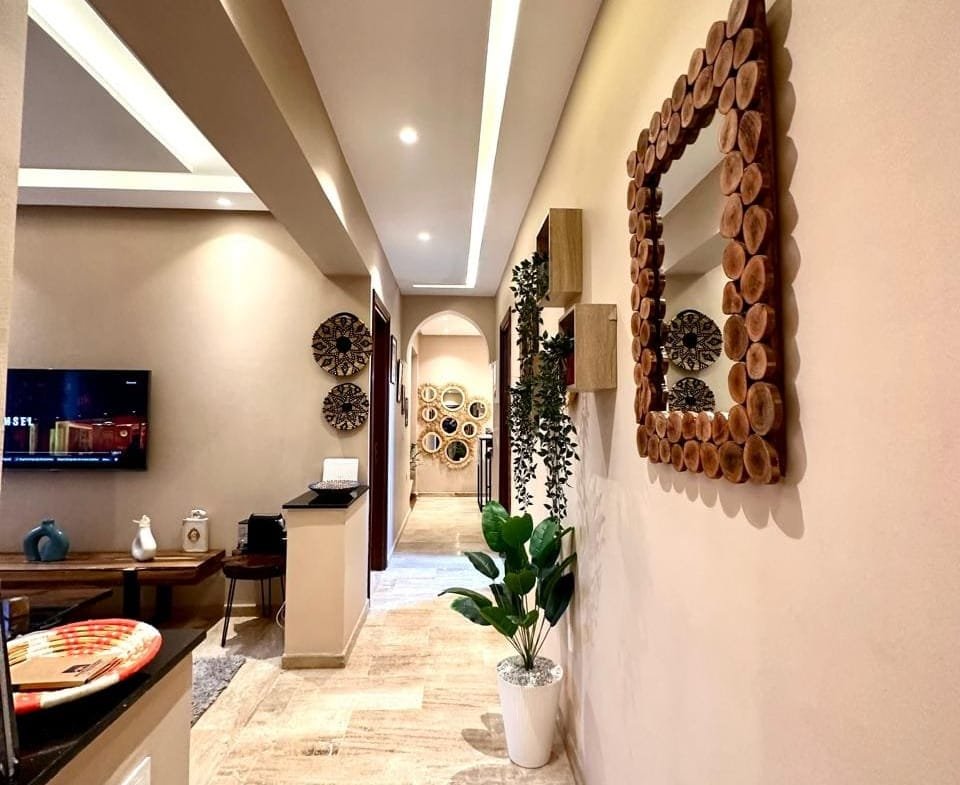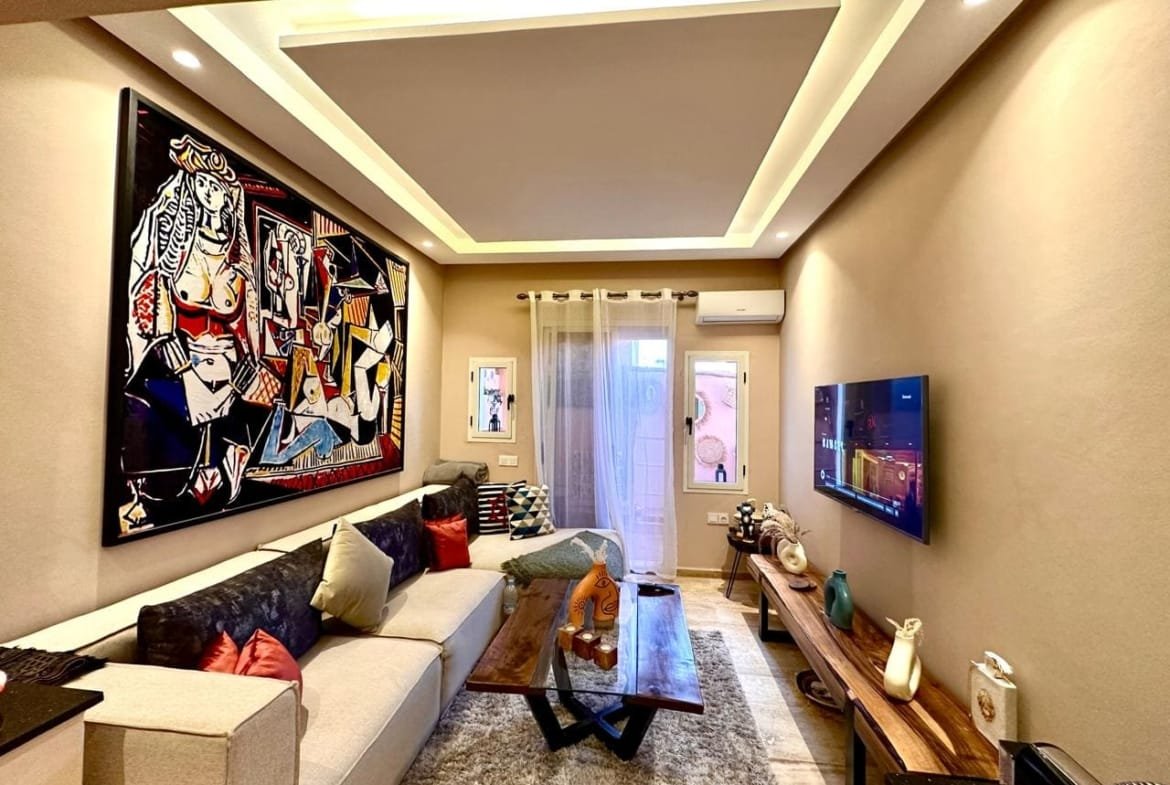 À louer, un magnifique appartement meublé au cœur de Guéliz Plaza, offrant un cadre de vie alliant confort et modernité. Cet appartement de 8 000 DHS par mois se compose de deux chambres spacieuses, de deux salles de bains, d’une cuisine entièrement équipée et d’un salon élégant avec une décoration soignée et raffinée. Idéalement situé, il vous permet de profiter pleinement de l’effervescence du quartier de Guéliz, tout en bénéficiant d’un espace de vie calme et chaleureux.
