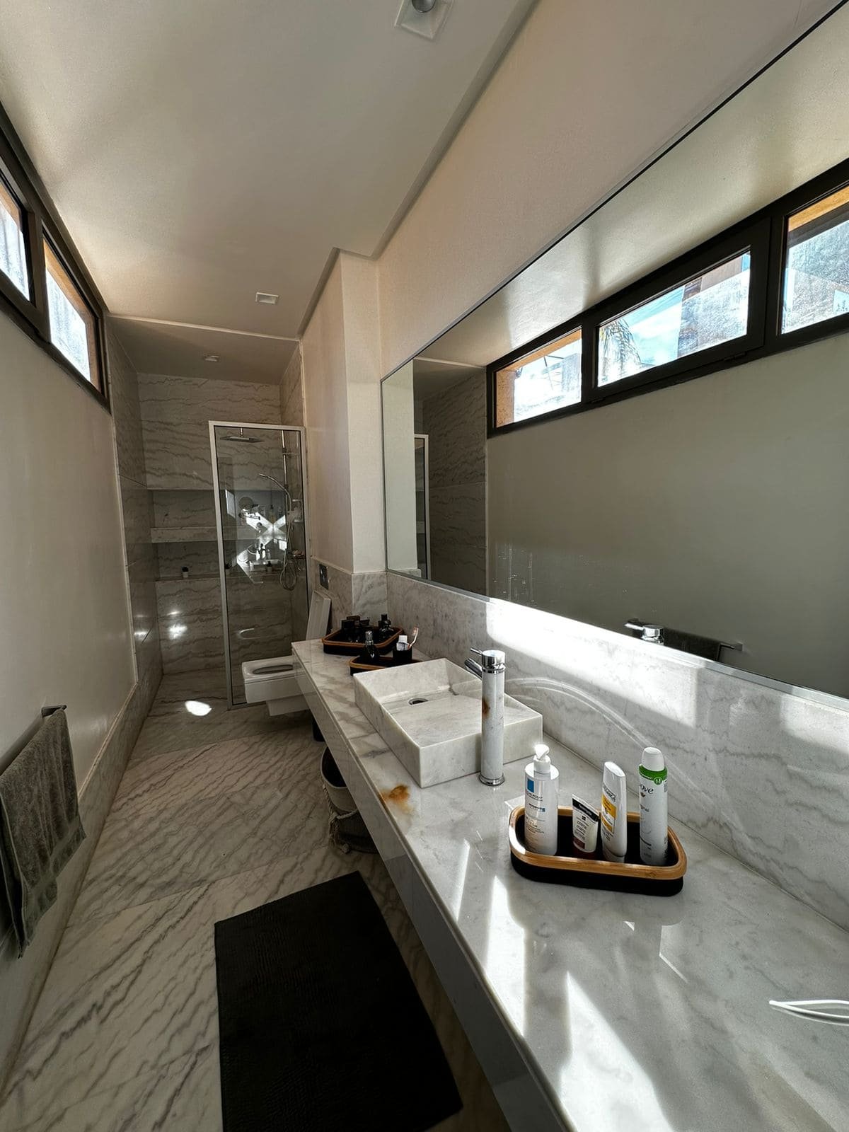 Elle se compose de trois suites spacieuses à l’étage, ainsi que d’une salle d’eau pour invités. Au rez-de-chaussée, profitez d’un salon moderne baigné de lumière, parfait pour des moments de détente. L’espace extérieur séduit par son jardin verdoyant et sa belle piscine privée, créant un cadre de vie agréable et apaisant.