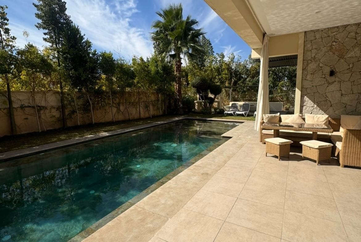 BY-TAK Immobilier vous propose cette superbe villa meublée située sur la Route de l’Ourika, offrant un cadre de vie luxueux et apaisant.